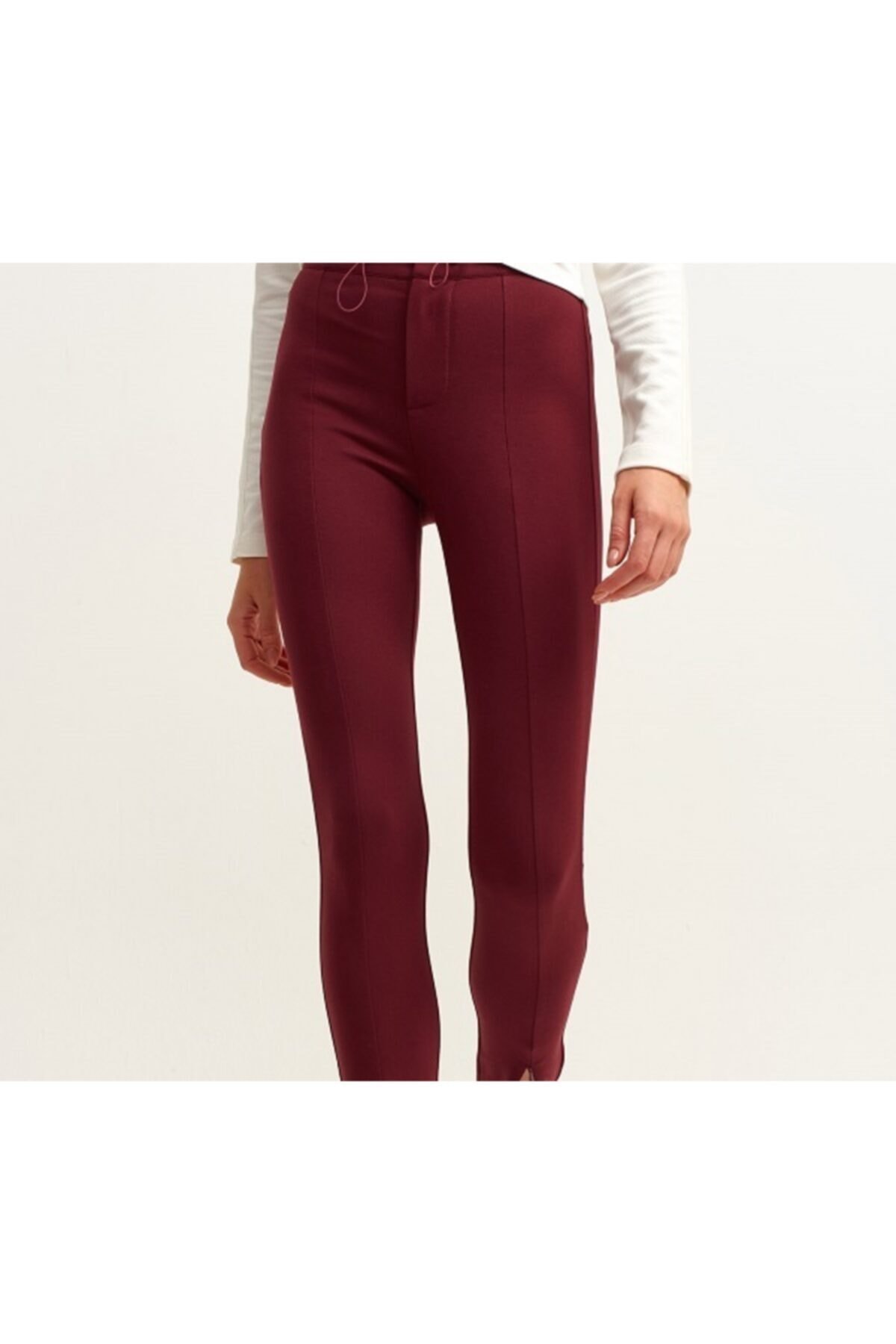 bordo renkli çizgili kot görünümlü tayt yanı fermuarlıdır kot tipi likralı dar kesim